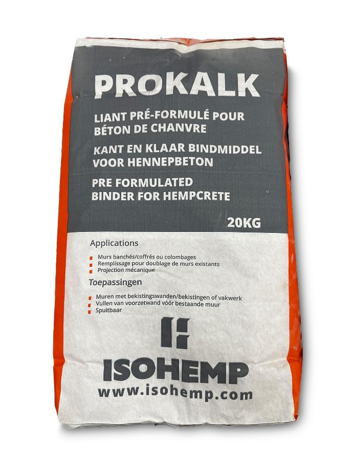 ProKalk ist ein speziell entwickeltes Bindemittel für das Herstellen von Hanfkalk. Es besteht aus hydraulischem Kalk und Luftkalk. Es handelt sich um ein gebrauchsfertiges Produkt, mit dem Sie vor Ort Mischungen herstellen können und somit das Risiko einer falschen Dosierung vermeiden.